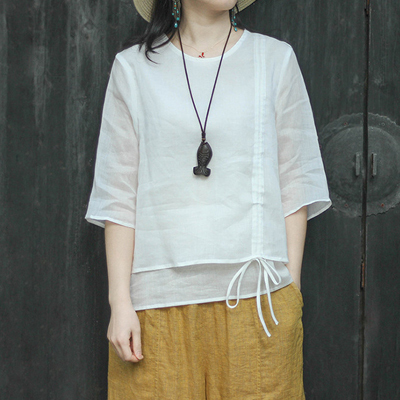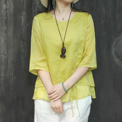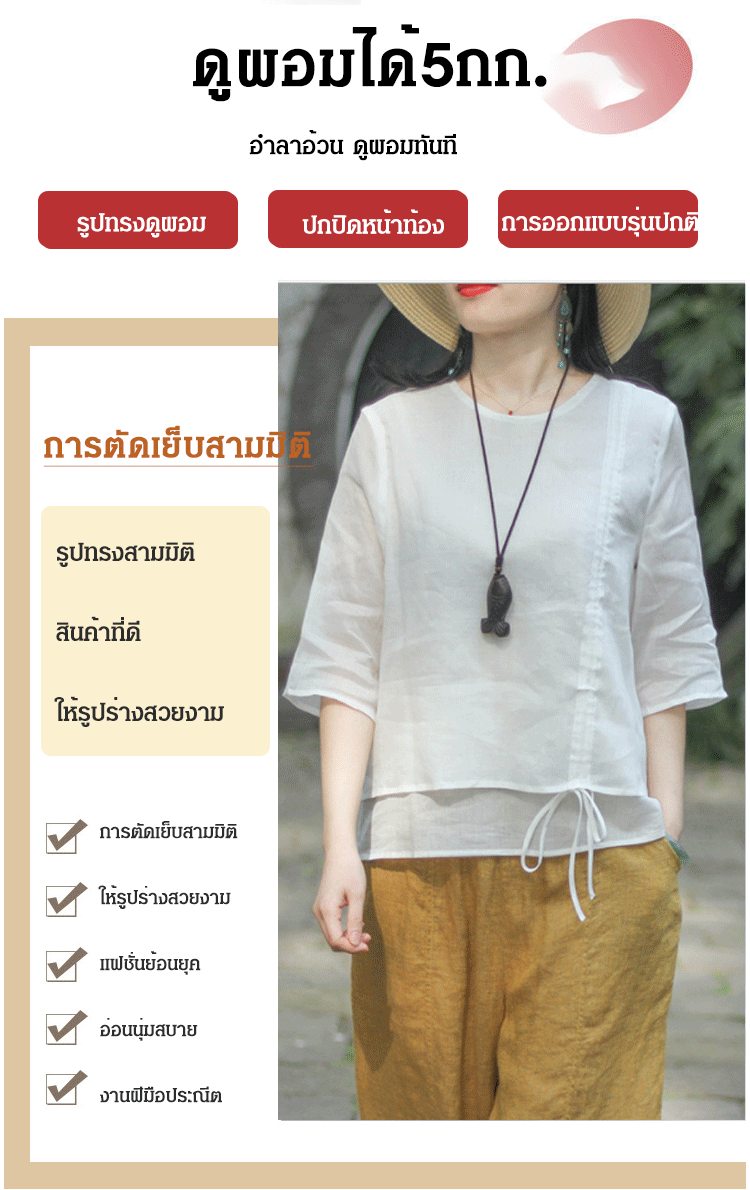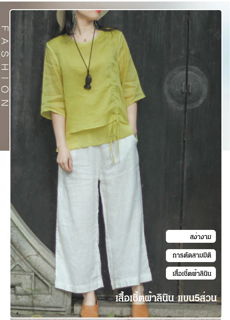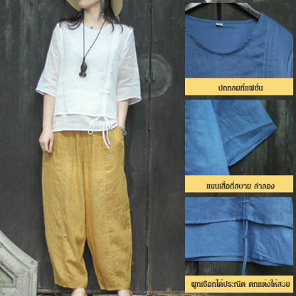 เสื้อเชิ้ตผ้าลินินผูกเชิอก สีทึบ