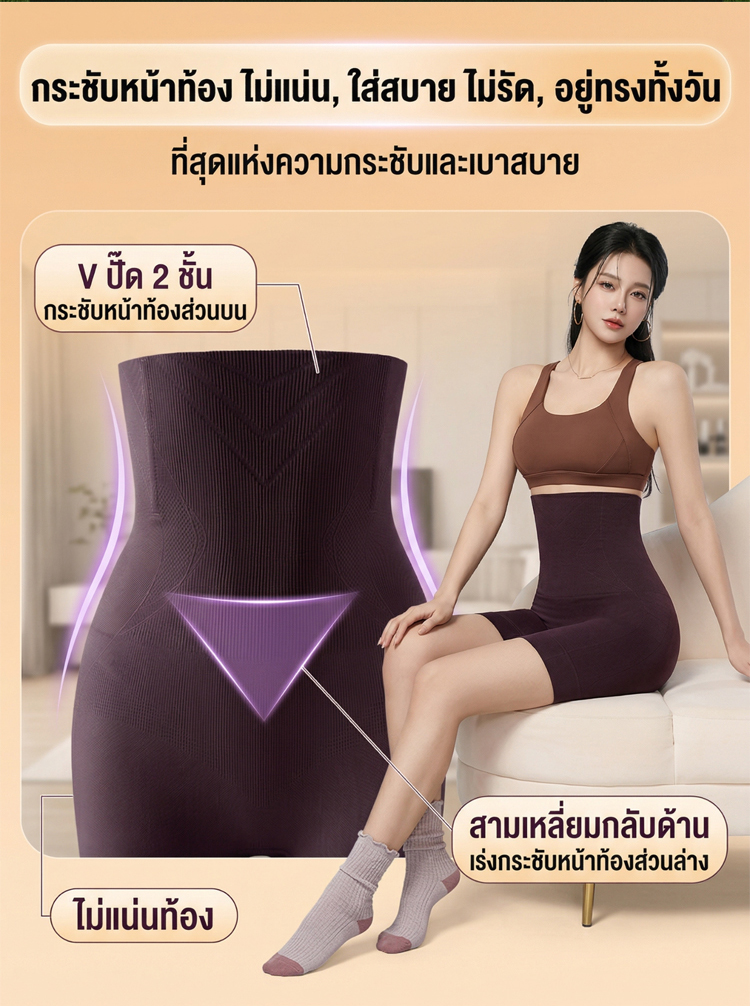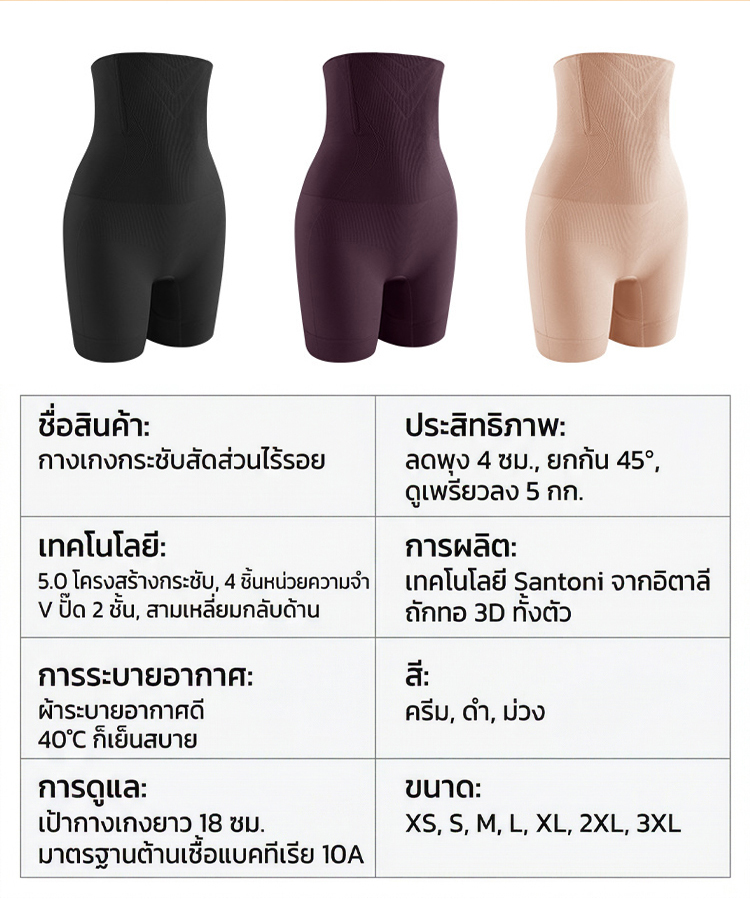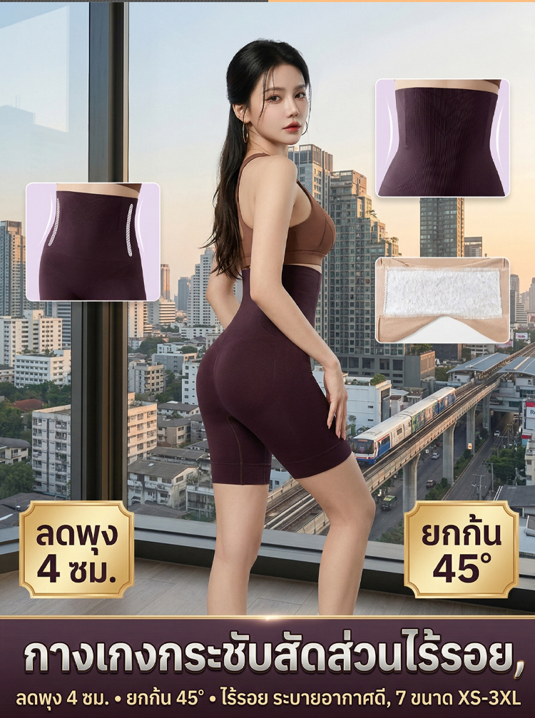 กางเกงเก็บพุงไร้รอยต่อ | พรางหุ่นผอมลง 5 โล | ผ้านุ่มระบายอากาศ ยกก้นสวย